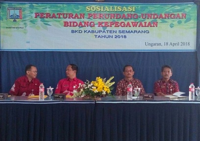 Ungaran (19/04/2018)-Admin BKD, Dalam rangka untuk memberikan pemahaman terhadap peraturan perundang-undangan kepegawaian yang baru maka, BKD Kabupaten Semarang menghadirkan Narasumber dari KanReg 1 BKN Yogyakarta dalam mengadakan acara "Sosialisasi Peraturan perundang-undangan Bidang Kepegawaian Tahun 2018". Acara yang dilaksanakan pada hari Rabu (18/04/2018) tersebut bertempat di Aula BKD Kab.Semarang dan dihadiri 46 orang perwakilan dari OPD di Lingkungan Pemerintah kabupaten Semarang.
