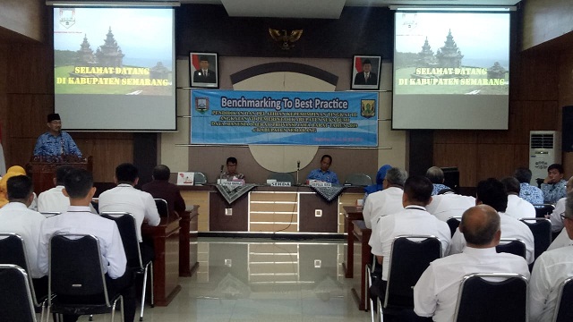 Sebanyak 35 orang peserta diklat dengan didampingi 5 orang panitia dan narasumber dari BPSDM Provinsi Jawa Barat diterima langsung oleh SekDa Kabupaten Semarang, Drs. Gunawan Wibisono, MM dan Kepala BKD Kabupaten Semarang, Partono, SH, MM. Mereka akan mengunjungi 4 OPD di Kabupaten Semarang sebagai lokasi benchmarking sampai dengan tanggal 20 juli 2019, 4 OPD tersebut adalah Dinas Penanaman Modal dan Pelayanan Terpadu Satu Pintu, Dinas Komunikasi dan Informatika, Dinas Pertanian, Perikanan dan Pangan dan Kecamatan Bergas
