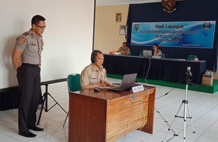Ungaran (23/03/2020)- Admin BKD, Studi Lapangan adalah salah satu mata pelatihan kepemimpinan yang bertujuan membekali peserta dengan kemampuan merumuskan lesson learn, adopsi dan adaptasi, serta keunggulan strategi peningkatan pengawasan dan pengendalian pelaksanaan pelayanan publik. Pembelajaran disampaikan secara interaktif dengan menggunakan metode kunjungan lapangan, tanya jawab, dan diskusi. Pemerintah Kabupaten Semarang menjadwalkan menerima Kunjungan Peserta Studi Lapangan Pelatihan Kepemimpinan Pengawas Angkatan I dan II PNS POLRI Tahun 2020, namun karena situasi Negara waspada terhadap penyebaran COVID 19 maka penerimaan kunjungan secara langsung atau face to face dibatalkan dan kegiatan dalam bentuk penyampaian materi oleh Narasumber  diubah dalam bentuk Video Conference sebagai wujud dari himbauan pemerintah terhadap social distancing . Langkah antisipasi ini juga sebagai wujud dari pelaksanaan Surat Edaran Kepala Lembaga Administrasi Negara Nomor: 7/K.1/HKM.02.3/2020 tentang Kewaspadaan dan Pencegahan Penularan Infeksi Corona Virus (Infeksi COVID-19) dalam penyelenggaraan pelatihan.