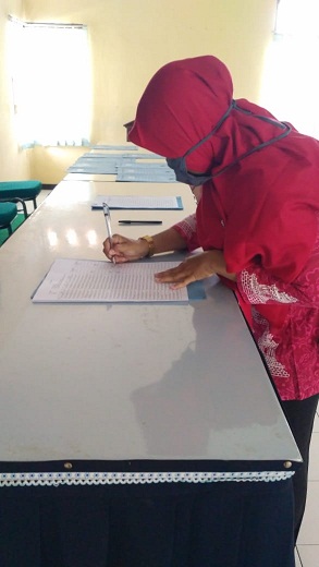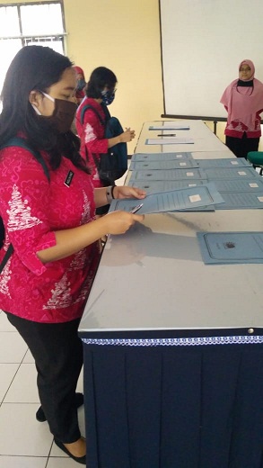 Peserta melakukan daftar hadir dan mengambil SK yang telah disiapkan panitia