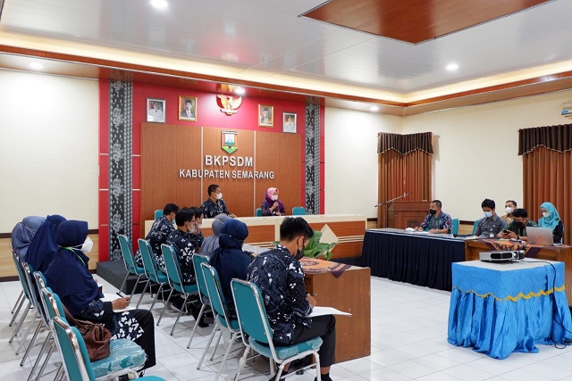 Ungaran (21/06/2022)-Admin BKPSDM, Badan Kepegawaian dan Pengembangan Sumber Daya Manusia Kabupaten Semarang memiliki tugas utama dalam melaksanakan penyusunan dan pelaksanaan kebijakan daerah di bidang kepegawaian, pendidikan dan pelatihan. ASN adalah profesi bagi PNS dan PPPK yang bekerja pada instansi pemerintah dengan keahlian tertentu serta memiliki etika khusus pada jabatannya yang menuntut profesionalitas dalam profesinya tersebut.