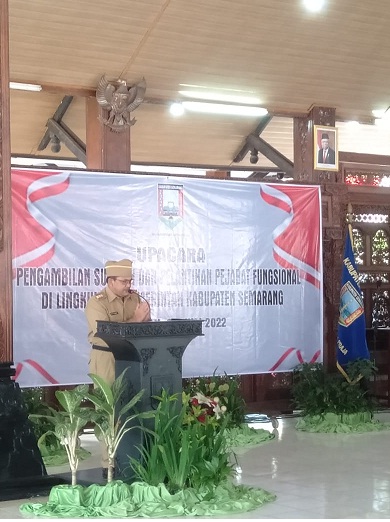 Ungaran(28/07/2022)-Admin BKPSDM, Jabatan Fungsional adalah kedudukan yang menunjukkan tugas, tanggungjawab, wewenang dan hak seorang PNS dalam suatu satuan organisasi yang dalam pelaksanaan tugasnya didasarkan pada keahlian (profesi dan kompetensi) dan  atau ketrampilan tertentu serta bersifat mandiri. Mendasari ketentuan PP Nomor 11 Tahun 2017 tentang Manajemen Pegawai Negeri Sipil dan Peraturan Kepala Badan Kepegawaian Negara Nomor 7 Tahun 2017 maka Pejabat Fungsional wajib dilantik dan mengangkat sumpah / janji jabatan menurut agama atau kepercayaannya kepada Tuhan Yang Maha Esa. Pelantikan dan pengangkatan sumpah / janji Jabatan dilakukan terhadap PNS yang diangkat menjadi pejabat fungsional, melalui pengangkatan pertama, perpindahan dari Jabatan lain, dan penyesuaian/inpassing.