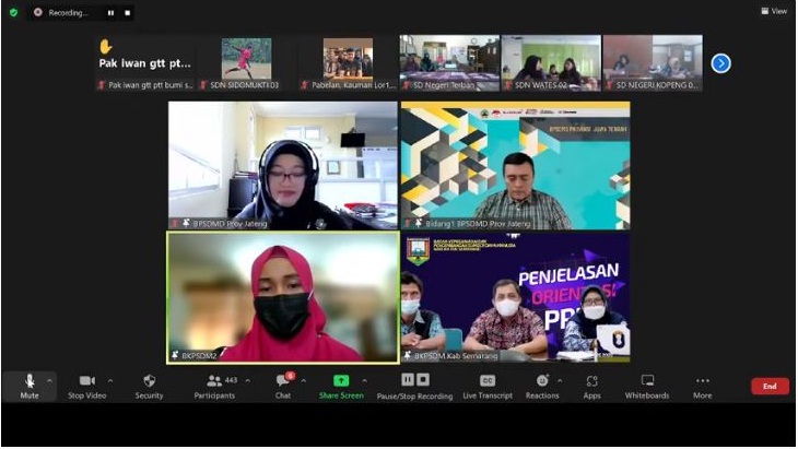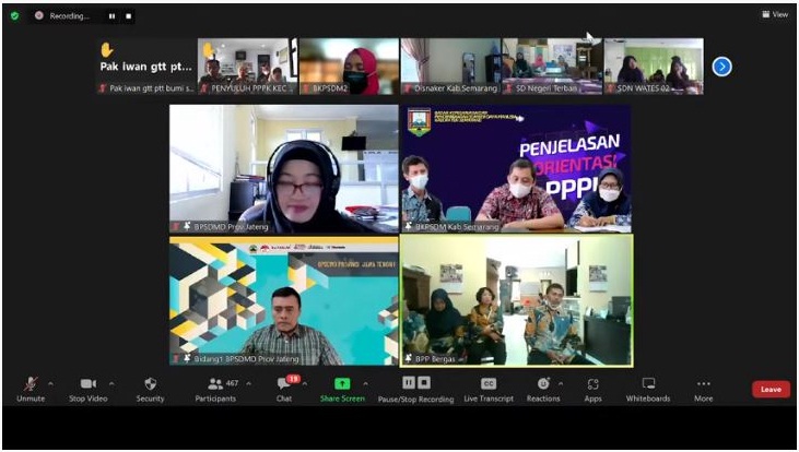 Ungaran (12/08/2022)- Admin BKPSDM, Dalam rangka melaksanakan Peraturan LAN Nomor 15 Tahun 2020 tentang Pengembangan Kompetensi Pegawai Pemerintah Dengan Perjanjian Kerja, dalam Pasal 31 disebutkan bahwa Instansi Pemerintah wajib menyelenggarakan Orientasi bagi Pegawai Pemerintah Dengan Perjanjian Kerja (PPPK), selanjutnya dalam Pasal 32 ayat 1 mengamanatkan Orientasi dilaksanakan paling lambat 1 (satu) bulan terhitung sejak diangkat pertama kali sebagai PPPK. Oleh karena itu, Pemerintah Kabupaten Semarang bekerja sama dengan BPSDMD Provinsi Jawa Tengah akan menyelenggarakan Orientasi bagi 1.505 PPPK di Lingkungan Pemerintah Kabupaten Semarang. Bertempat di Ruang Zoom Meeting BKPSDM Kabupaten Semarang pagi ini jum'at (12/08/2022) dilaksanakan Penjelasan Teknis Pelaksanaan Orientasi Pegawai Pemerintah Dengan Perjanjian Kerja (PPPK)Tahun 2022 secara daring dengan mengundang 97 Pengelola Kepegawaian dan semua PPPK, yang saat ini berjumlah 1.505 orang dari jumlah sebelumnya 1.510 PPPK, setelah 3 orang memasuki batas usia pensiun, 1 orang mengundurkan diri, dan 1 orang meninggal dunia. Penjelasan orientasi disampaikan langsung oleh narasumber dari BPSDMD Provinsi Jawa Tengah.