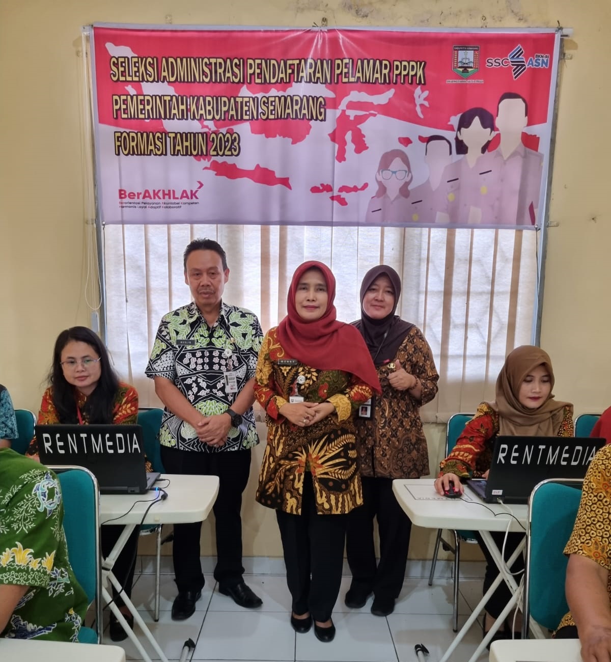 Ungaran, Admin BKPSDM  (4/10/2023). Berdasarkan pengumuman Sekretaris Daerah Kabupaten Semarang nomor 810/0003859/2023 tanggal 19 September 2023 tentang Pengadaan Pegawai Pemerintah dengan Perjanjian Kerja (PPPK) di lingkungan Pemerintah Kabupaten Semarang, bahwa Pemerintah Kabupaten Semarang mendapatkan alokasi 856 kebutuhan PPPK dengan rincian Kelompok Jabatan Guru sejumlah 630, Tenaga Kesehatan (kebutuhan khusus 144, kebutuhan umum 36), Tenaga Teknis (kebutuhan khusus 5, kebutuhan umum 41). Sesuai jadwal pendaftaran dilaksanakan mulai tanggal 20 September s.d. 9 Oktober 2023, sedangkan seleksi administrasi mulai tanggal 20 September 2023 s.d. 12 Oktober 2023. Seleksi administrasi dilakukan secara online di ruang verifikasi BKPSDM Kabupaten Semarang. Sebelum melaksanakan verifikasi berkas secara online diberikan pengarahan oleh Kepala BKPSDM Kabupaten Semarang kepada para Tim Verifikator.