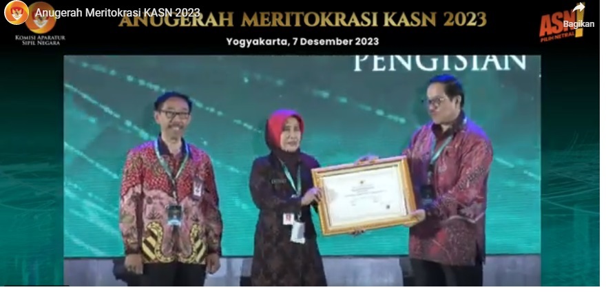 Yogyakarta, Admin BKPSDM (07/12/2023), Pemerintah Kabupaten Semarang raih anugerah Meritokrasi 2023 dari Komisi Aparatur Negara (KASN). Penghargaan diterima oleh Kepala BKPSDM Kabupaten Semarang Wenny Maya Kartika, S.H., M.H. di Kraton Grand Ballroom, Yogyakarta Marriot Hotel, Kamis (07/12/2023).