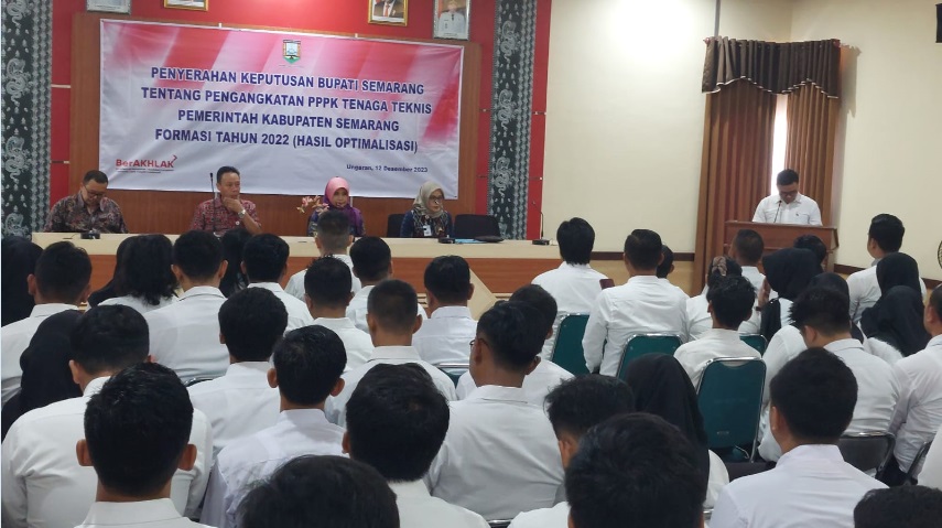 Dalam sambutannya Kepala BKPSDM atas nama Bupati Semarang menyampaikan ucapan terima kasih dan selamat, setelah perjalanan panjang sejak penetapan formasi tahun 2022 untuk tenaga teknis sejumlah 411 formasi tidak semua lulus seleksi kompetensi pada bulan Maret 2023, yang lulus hanya 146, dengan adanya kekosongan tersebut “Alhamdulillah” ada kebijakan dari pemerintah tentang optimalisasi PPPK tenaga teknis yang belum terisi dilakukan optimalisasi tenaga non ASN yang sudah mengikuti seleksi kompetensi PPPK pada bulan Maret 2023 dan bekerja di Instansi Pemerintah Kabupaten Semarang untuk diangkat menjadi PPPK. Disampaikan pula bahwa setelah pengangkatan PPPK ada kewajiban yang harus dilaksanakan yakni akan terjadwal mengikuti orientasi PPPK yakni pengenalan nilai dan fungsi serta etika pada tahun 2024 yang bekerja sama dengan BPSDMD Provinsi Jawa Tengah dan pengembangan kompetensi  secara terus-menerus. Dalam kesempatan ini disampaikan pula pesan “berkinerjalah yang baik, agile, dan tanggungjawab,” karena tuntutan ASN saat ini adalah dapat mengikuti perkembangan zaman seiring digitalisasi manajemen ASN. Selanjutnya setelah menerima keputusan pengangkatan menjadi PPPK ini untuk menghadap ke Pimpinan Perangkat Daerah masing-masing dan selanjutnya pimpinan perangkat daerah akan membuatkan SPMT-nya, sedangkan penggajiannya akan dibayarkan TMT 1 Januari 2024. “Mudah-mudahan senantiasa diberikan kemudahan dan kelancaran dalam menjalankan tugas sampai purna, “pungkasnya.