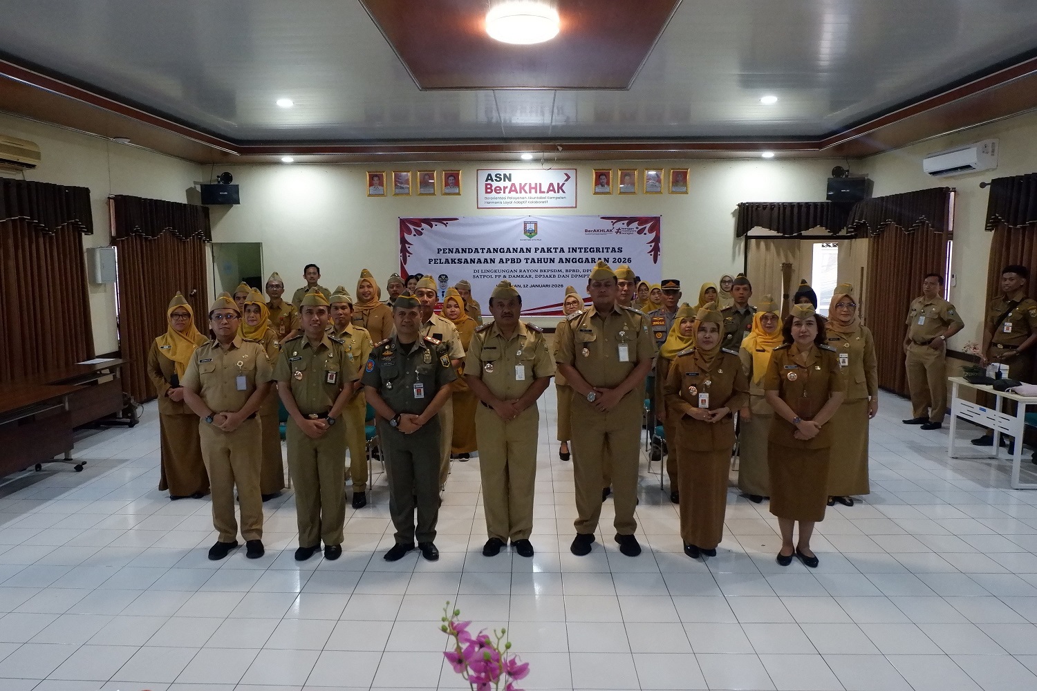 Ungaran, BKPSDM (12/01/2026), Sejumlah 19 Pejabat Administrator di lingkungan BKPSDM, BPBD, Satpol PP dan Damkar, DPU, DP3AKB, dan DPMPTSP menandatangani Pakta Integritas, Perjanjian Kinerja, dan Pemanfaatan Barang Milik Daerah Pelaksanaan APBD Tahun Anggaran 2026 dihadapan Bupati Semarang yang diwakili Sekretaris Daerah, bertempat di Aula BKPSDM Kabupaten Semarang, Senin siang (12/01/2026). Hadir pula pada acara tersebut Kepala BKPSDM, Kepala BPBD, Kepala Satpol PP dan Damkar, Plt. Kepala DPU, Kepala DP3AKB, Kepala DPMPTSP.