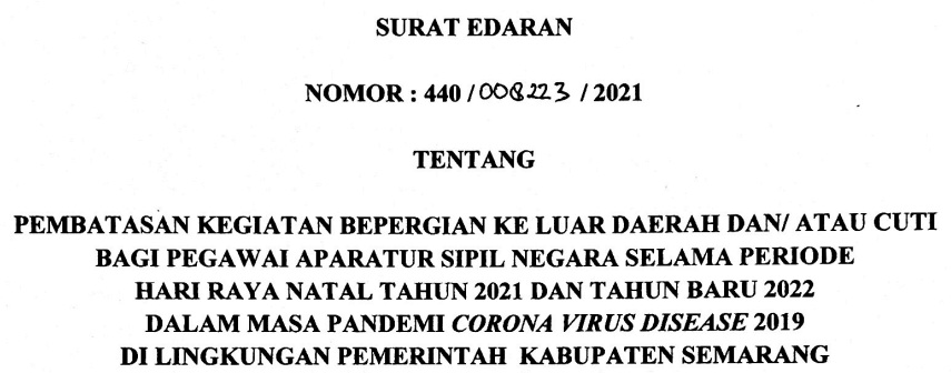 SURAT EDARAN SEKRETARIS DAERAH KABUPATEN SEMARANG