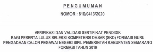 VERIFIKASI DAN VALIDASI SERTIFIKAT PENDIDIK BAGI PESERTA LULUS SKD FORMASI GURU CPNS FORMASI TAHUN 2019 DI PEMERINTAH KABUPATEN SEMARANG