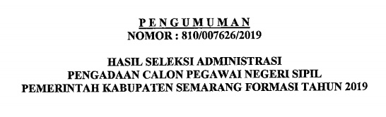 PERUBAHAN BATAS WAKTU PENDAFTARAN PENGADAAN CPNS KABUPATEN SEMARANG FORMASI TAHUN 2019